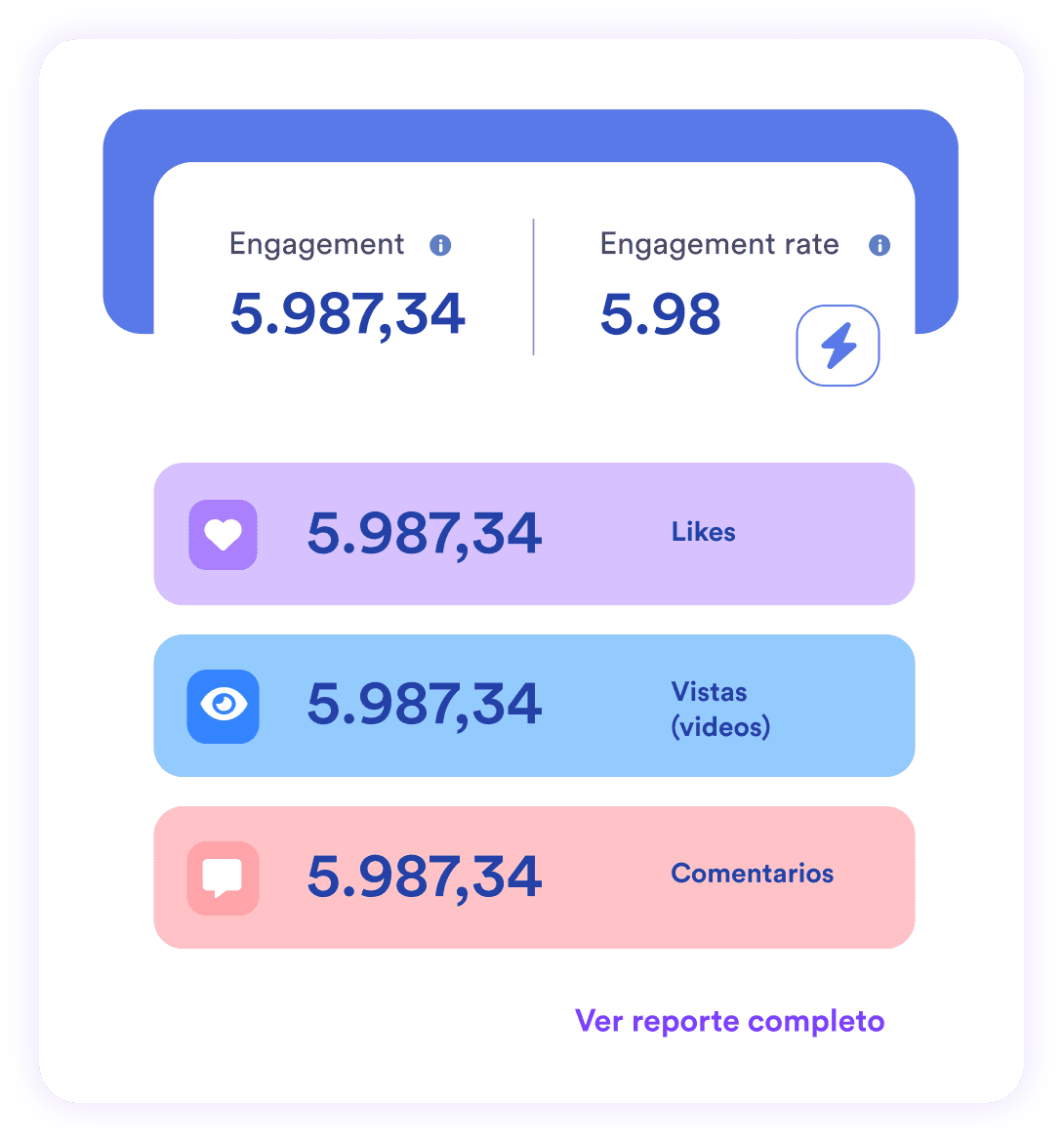 Evalúa el rendimiento utilizando indicadores específicos para cada publicación, influencer y campaña.