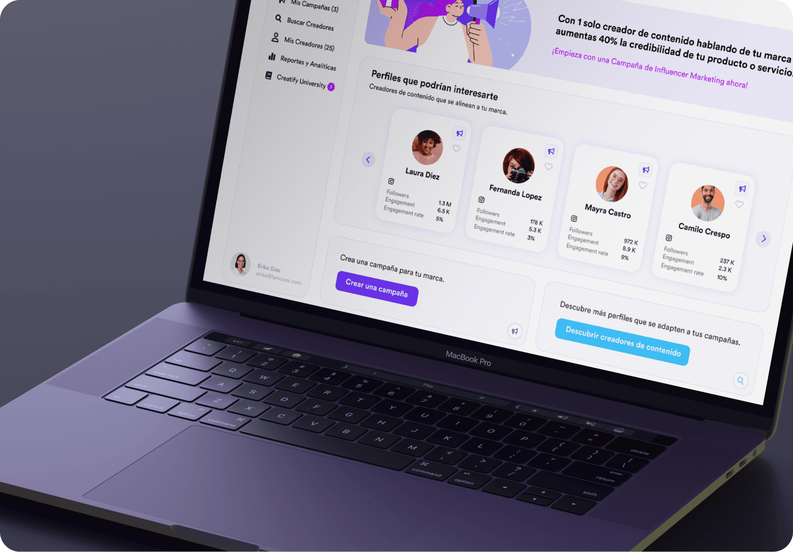 Creatify te brinda una solución integral que te permite organizar tus campañas de marketing de influencia.